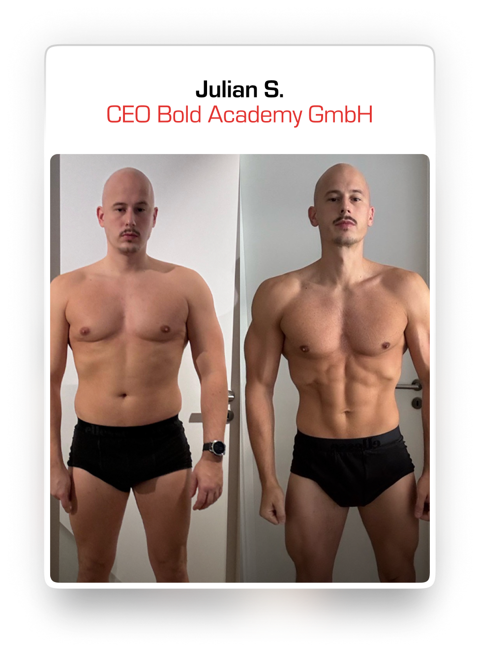Egal ob Muskelaufbau, Fettverlust, höheres Testosteronlevel oder einfach mehr Leistungsfähigkeit. Wir erarbeiten mit dir ein Konzept, was dich in deine Topform bringt! Das Beste daran, wir übernehmen die gesamte Planung und du kannst dich komplett auf dein Business konzentrieren.